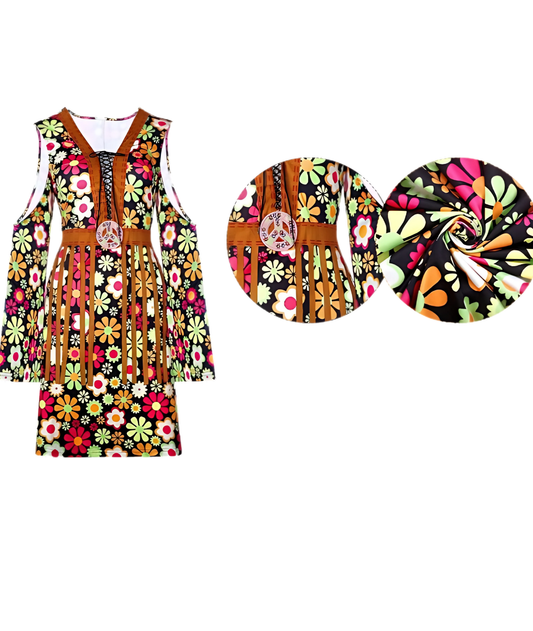 60s 70s Women Hippie Costume with Dress for Halloween