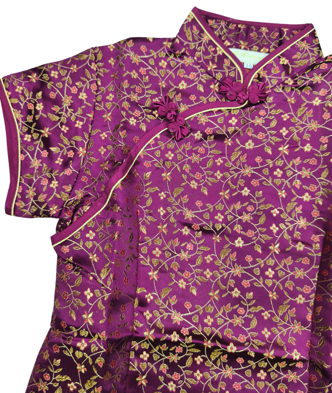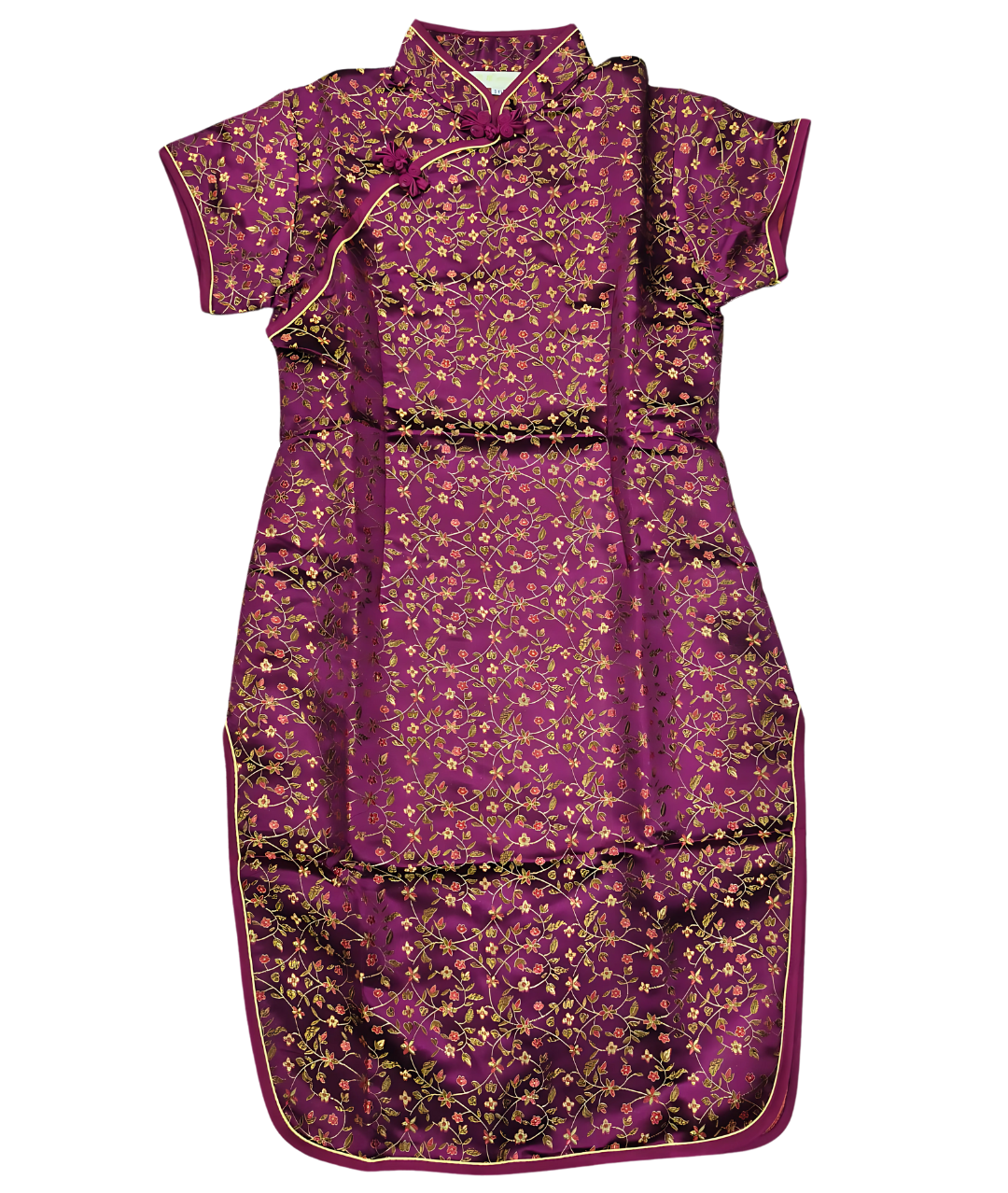 فستان تشيباو شيونغسام صيني للبنات باللون الأرجواني مناسب لعمر 8/10 سنوات.
