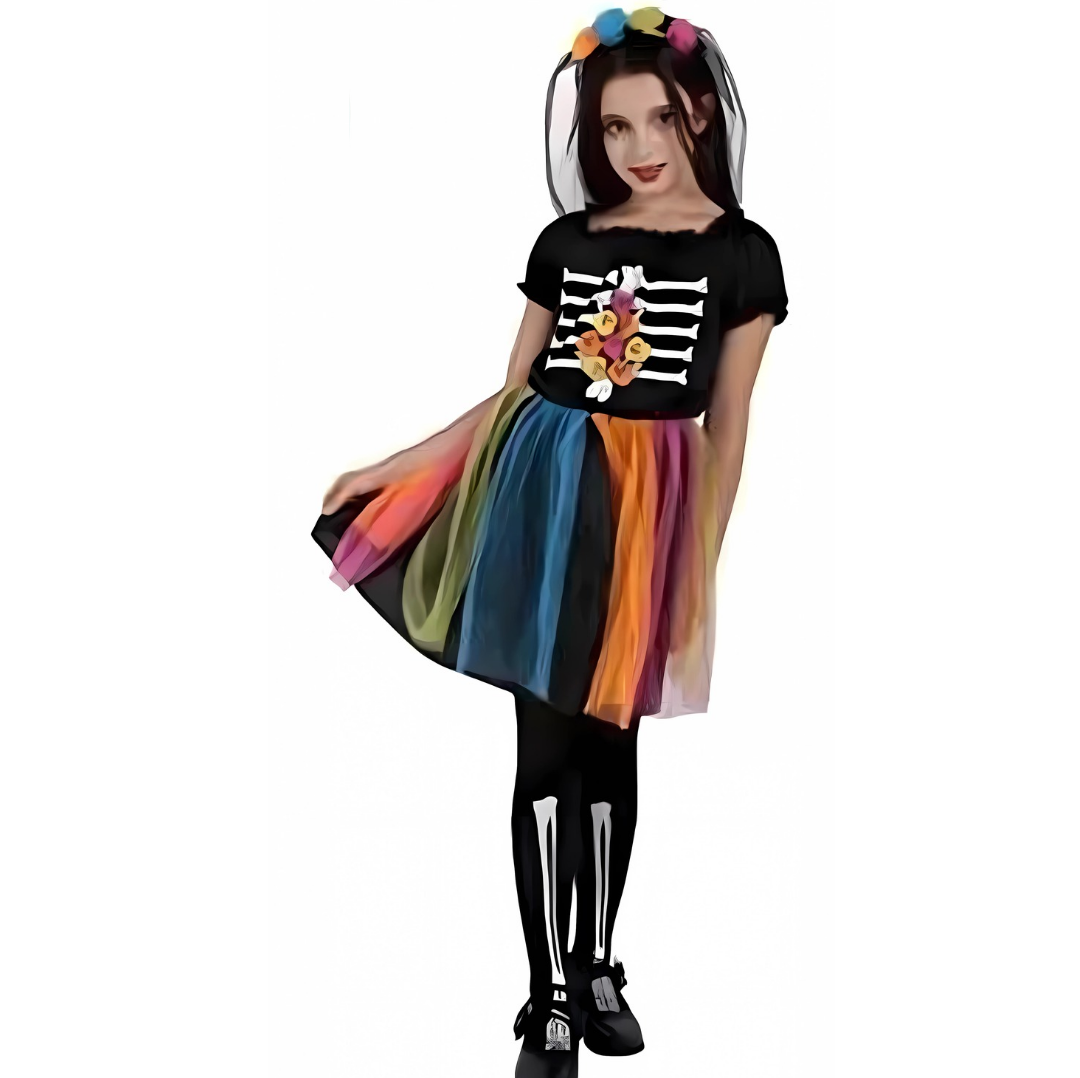 وهو مثالي لفتياتك الصغيرات لارتدائه في حفلات الهالوين، وحفلات الهياكل العظمية، ولعب الأدوار في الكرنفال، والمهرجانات التنكرية، والمتنزهات الترفيهية، والمنزل المسكون والمزيد.