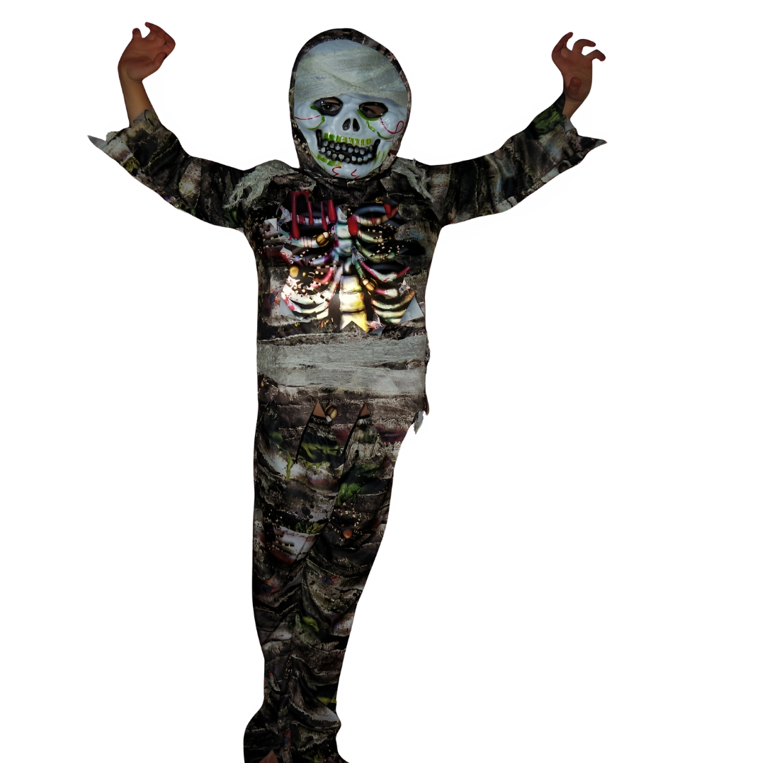 زي تنكري لزومبي هيكل عظمي للأطفال، زي تنكري للأولاد والبنات لحفلة الهالوين
