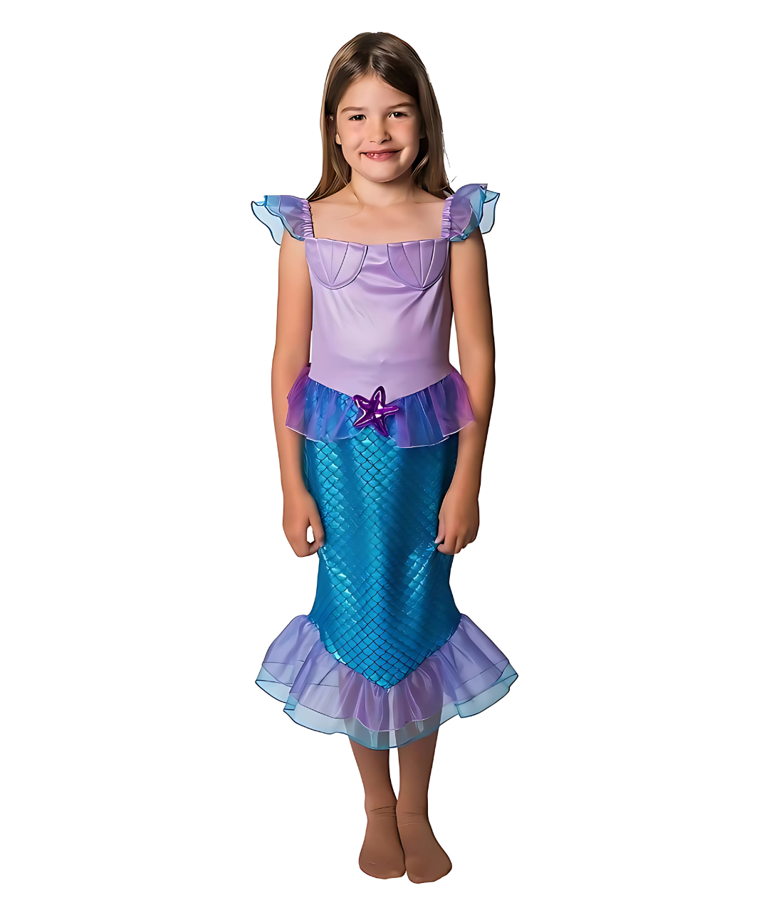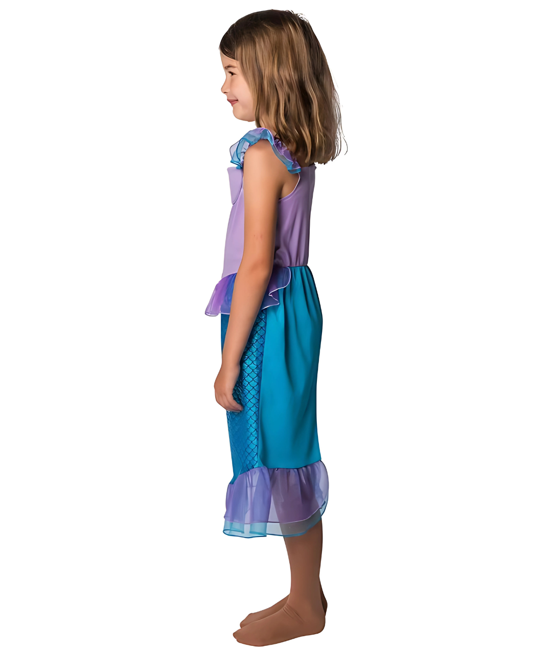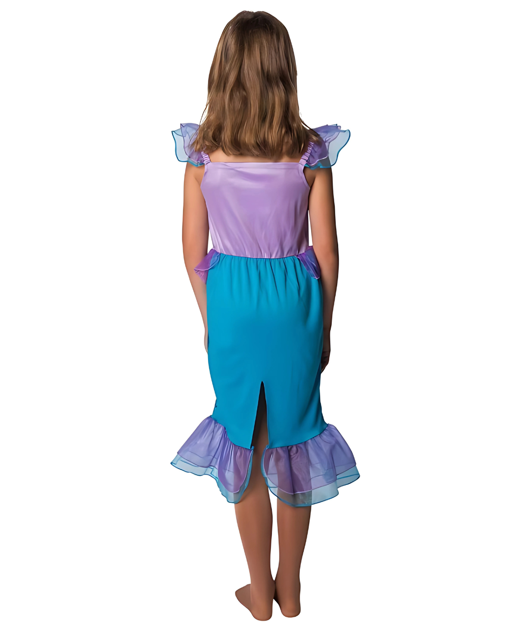 ستحب أميرتك الصغيرة الاستمتاع باللعب في مملكة بحرية خيالية مرتدية زي حورية البحر الصغيرة المفضلة لديها، آرييل. يتميز هذا الفستان الضيق بتصميم لامع باللون الأزرق المائي والأرجواني، ومزين بتفاصيل كشكشة رائعة.