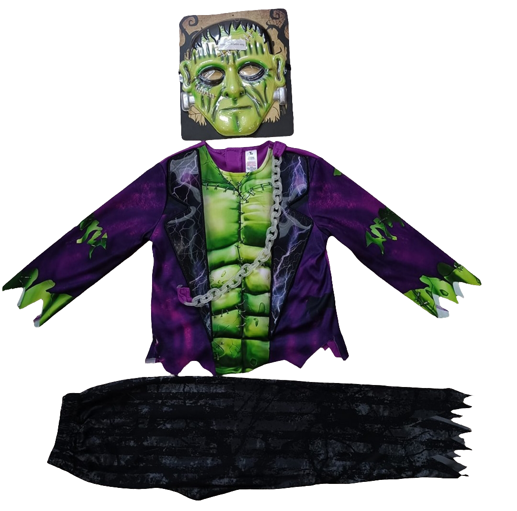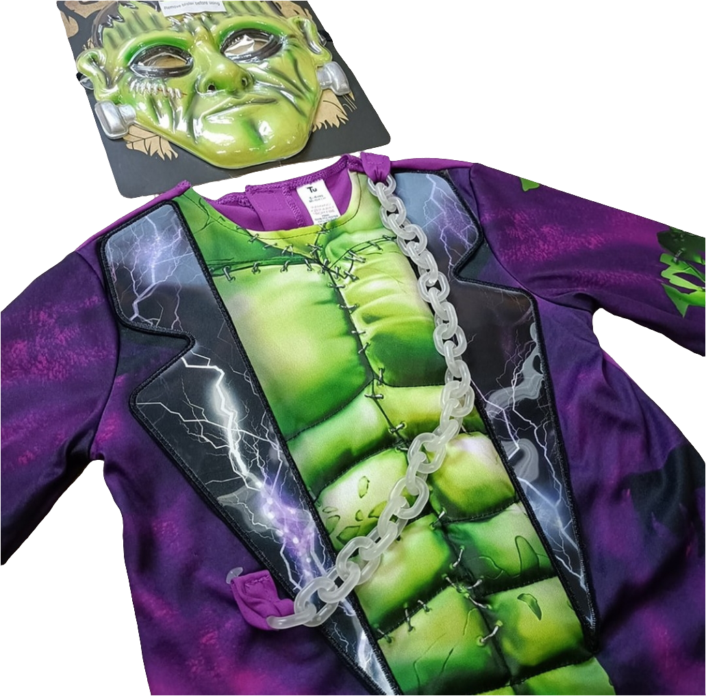 سيحب طفلك الصغير الدخول في روح الهالوين مع مجموعة الأزياء المرعبة هذه. يتميز الجزء العلوي المبطن بسلسلة قابلة للفصل وياقة صدر مصنوعة من صاعقة عدسية تتغير مع التقاط الضوء لمزيد من الرعب. يتميز القناع بوجه وحش فرانكنشتاين غير المحبوب، والجزء السفلي المتناسق له خصر مطاطي لجعل الزي التنكري مريحًا وسهلًا أيضًا لمزيد من الراحة. هل يريد أحد الحلوى أو الهالوين؟