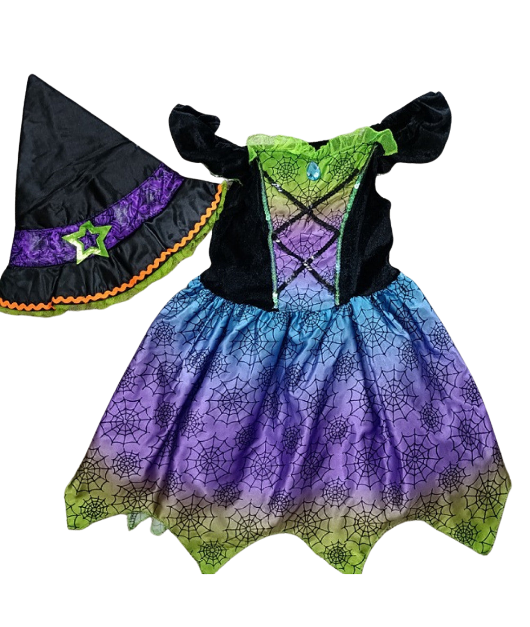 سوف يحب طفلك الصغير الدخول في روح الهالوين مع زي الساحرة الملون الشرير هذا.